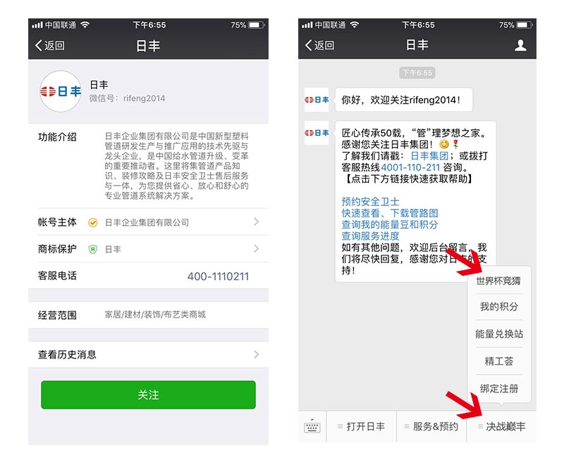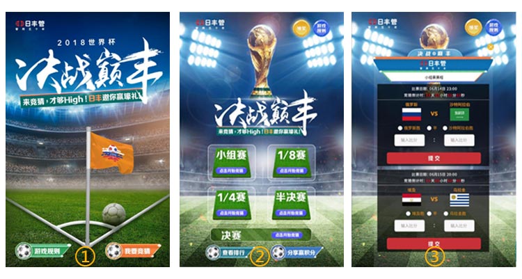 “2018世界杯·決戰(zhàn)巔豐”線上競猜互動游戲舉辦時間為6月13日20:00至7月15日23:00,球迷們只要在微信上關注日豐公眾號(rifeng2014),點擊菜單欄“決戰(zhàn)巔豐”—“世界杯競猜”,即可開始世界杯競猜。