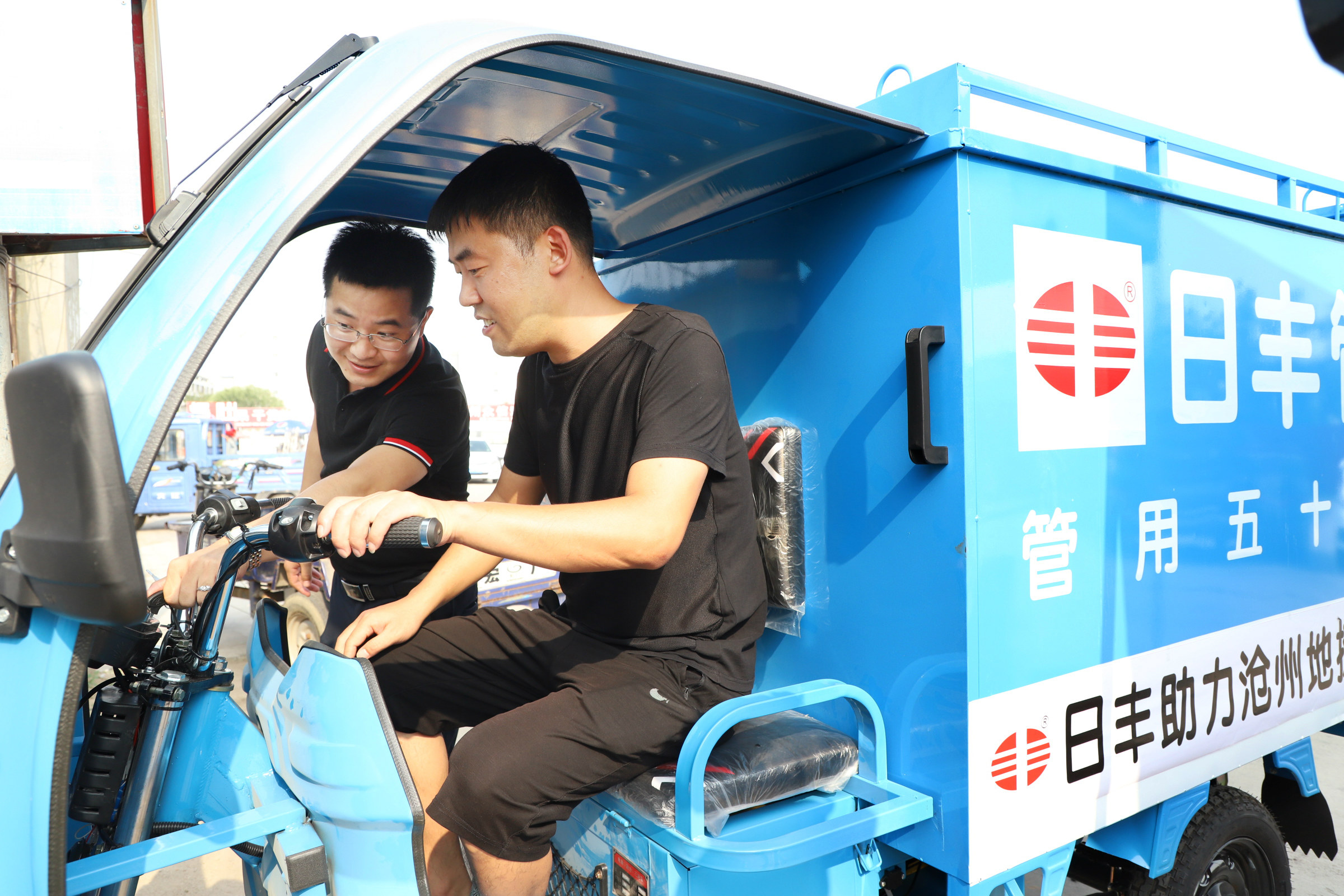 經(jīng)過(guò)實(shí)際走訪了解到上述情況的日豐公司對(duì)朱亮亮和王增發(fā)二人進(jìn)行了幫扶。7月29日,滄州市當(dāng)?shù)氐娜肇S代理商——天脈暖通設(shè)備有限公司為二人送去了糧油、電動(dòng)三輪車(chē)等物資,并派遣了工作人員對(duì)二人的攤位進(jìn)行定點(diǎn)幫扶。尤其讓朱亮亮和王增發(fā)感動(dòng)的是,代理商送去的電動(dòng)三輪車(chē)為一直使用腳蹬三輪車(chē)的二人節(jié)省了很大體力,并提高了出攤效率,受到幫扶的二人也對(duì)未來(lái)充滿了信心,并希望將這份愛(ài)和溫暖繼續(xù)傳遞下去。