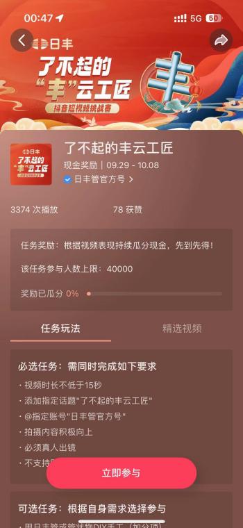 凡此過往,皆為序章,日豐將以#了不起的豐云工匠#話題挑戰(zhàn)活動為契機,繼續(xù)以有趣好玩的創(chuàng)意形式,吸引更廣泛人群認識日豐、了解日豐、信任日豐、選擇日豐。與此同時,日豐也希望更多有情懷、有文化、有潮流、有熱愛、有堅持、有態(tài)度的匠心匠人,與日豐一起打造更多破圈營銷內(nèi)容,共同為中國制造持續(xù)升級貢獻智慧與力量!