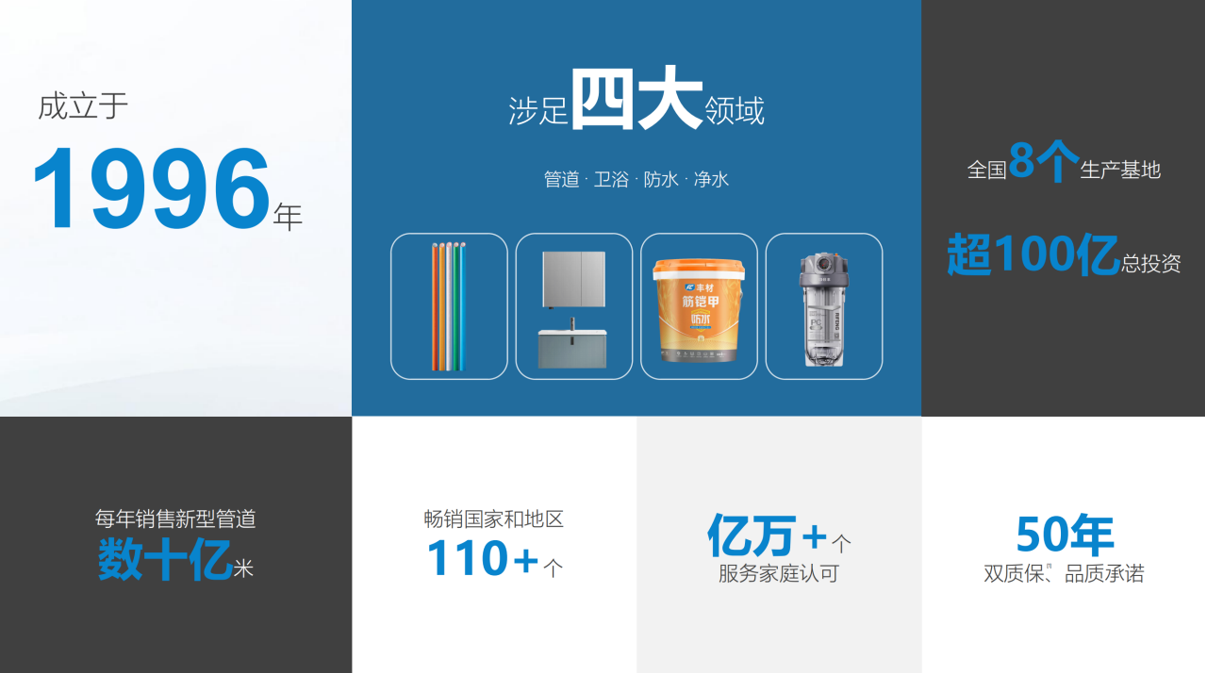 日豐業務涵蓋管道、衛浴、防水、凈水四大領域,憑借深厚的研發積累、覆蓋全國的產能布局和完善的服務網絡,成為眾多頭部裝企、房企及市政項目的長期戰略伙伴,贏得億萬用戶的信賴。