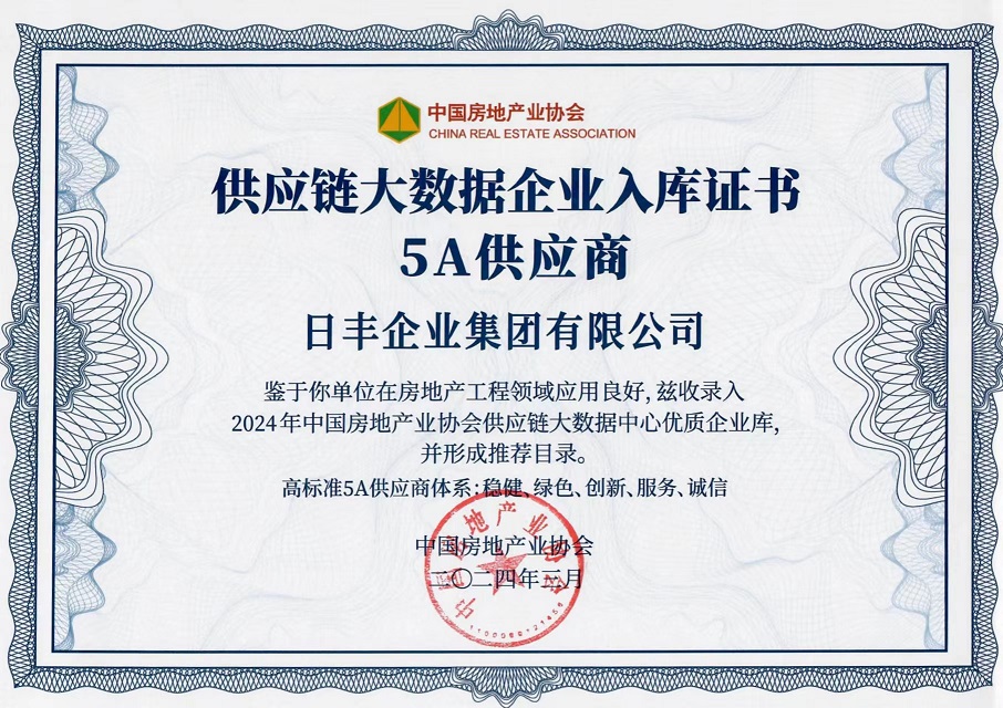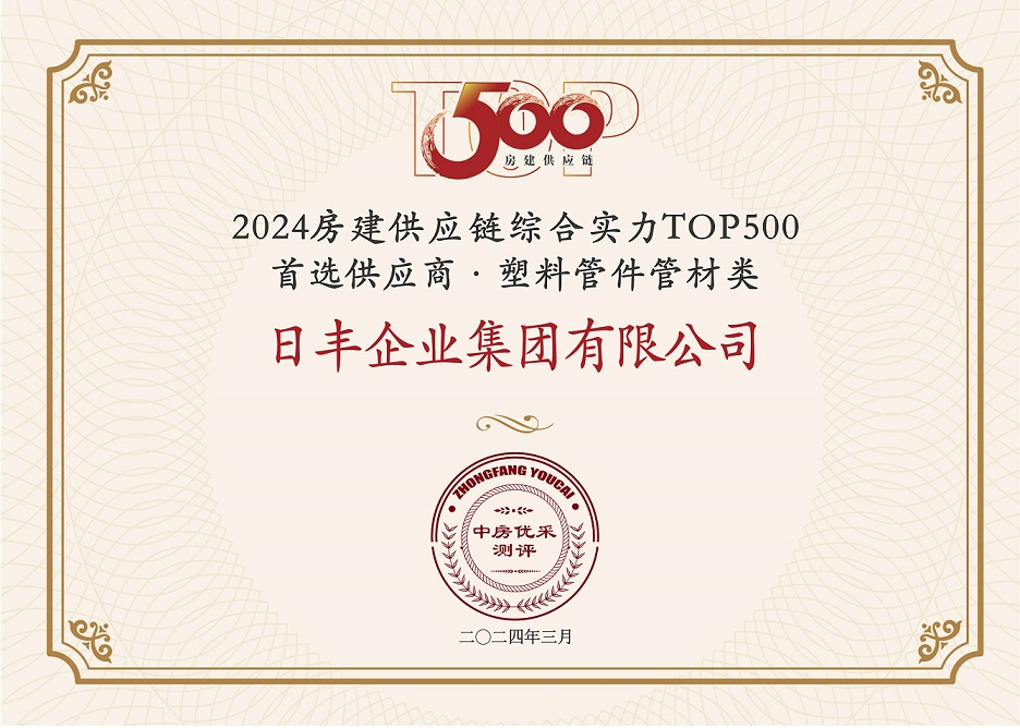 3月20日,中房優(yōu)采測評正式發(fā)布《2024房建供應(yīng)鏈企業(yè)綜合實力TOP500-首選供應(yīng)商服務(wù)商測評報告》,日豐憑借強大的品牌影響力、市場滲透力及高度的用戶評價,連續(xù)9年登上“2024房建供應(yīng)鏈企業(yè)綜合實力TOP500-首選供應(yīng)商·塑料管件管材類”榜單,并成功錄入中國房地產(chǎn)業(yè)協(xié)會建立的供應(yīng)鏈大數(shù)據(jù)中心“5A供應(yīng)商”企業(yè)庫。