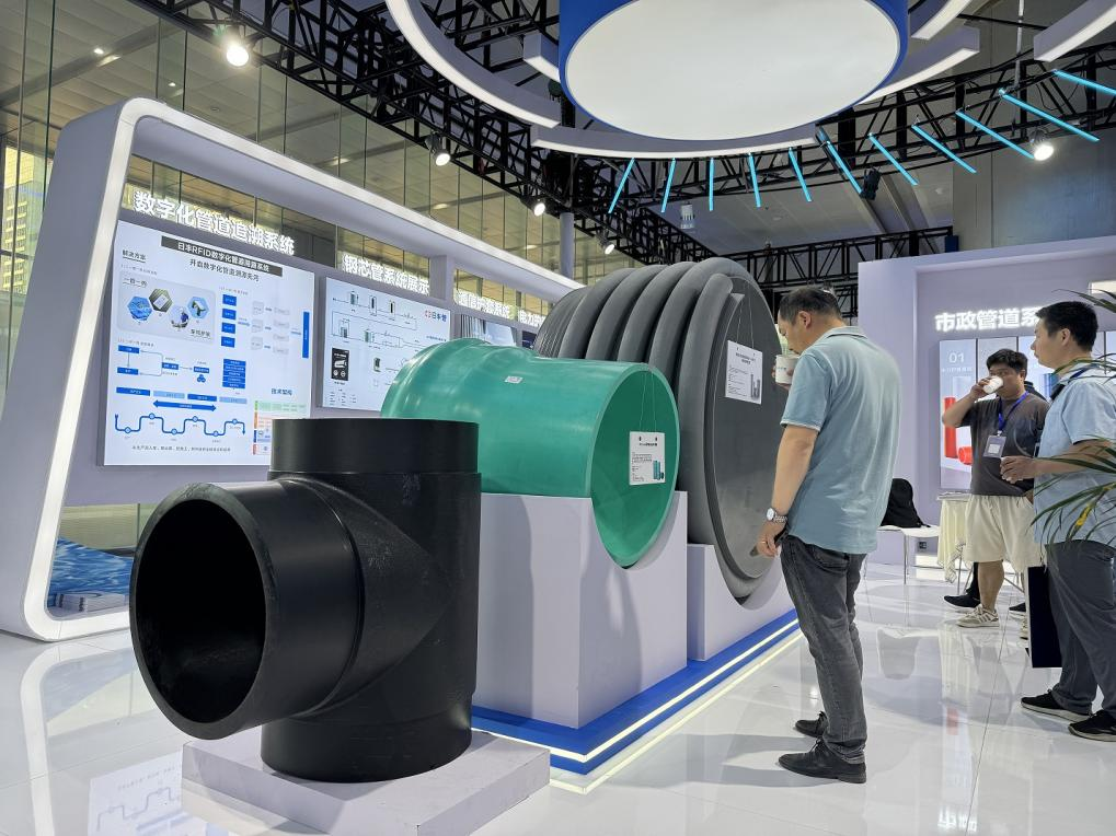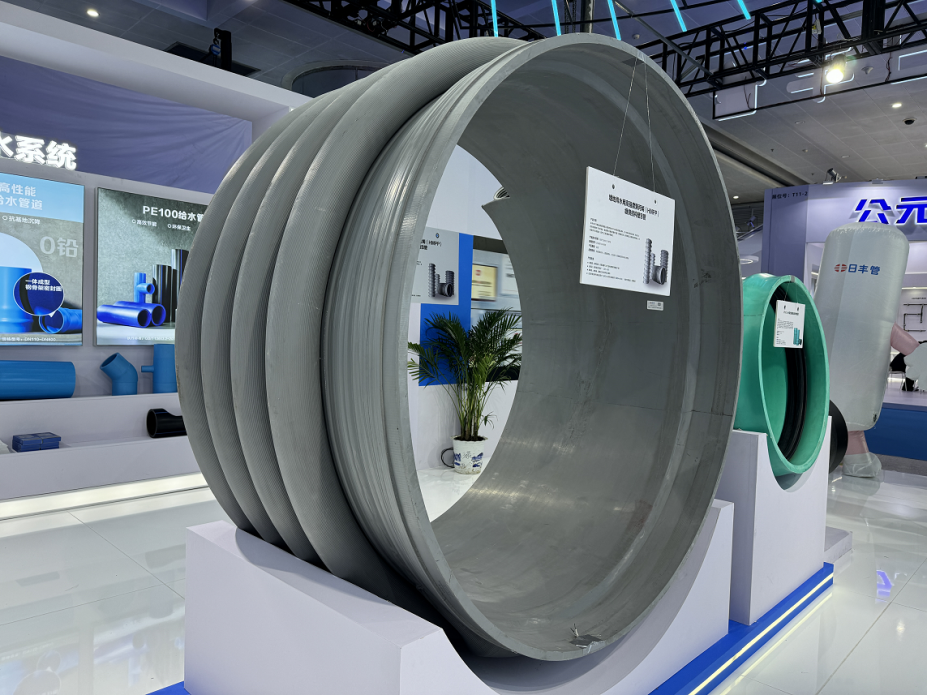 展會上,日豐攜多個管道系統參展,全方位展現日豐制造實力。日豐市政管道作為重點展品備受關注,其中,HDPE給水管、HMPP纏繞結構壁B型克拉管和PVC-UH高性能低壓排水管成為了本次博覽會的“明星”產品。
